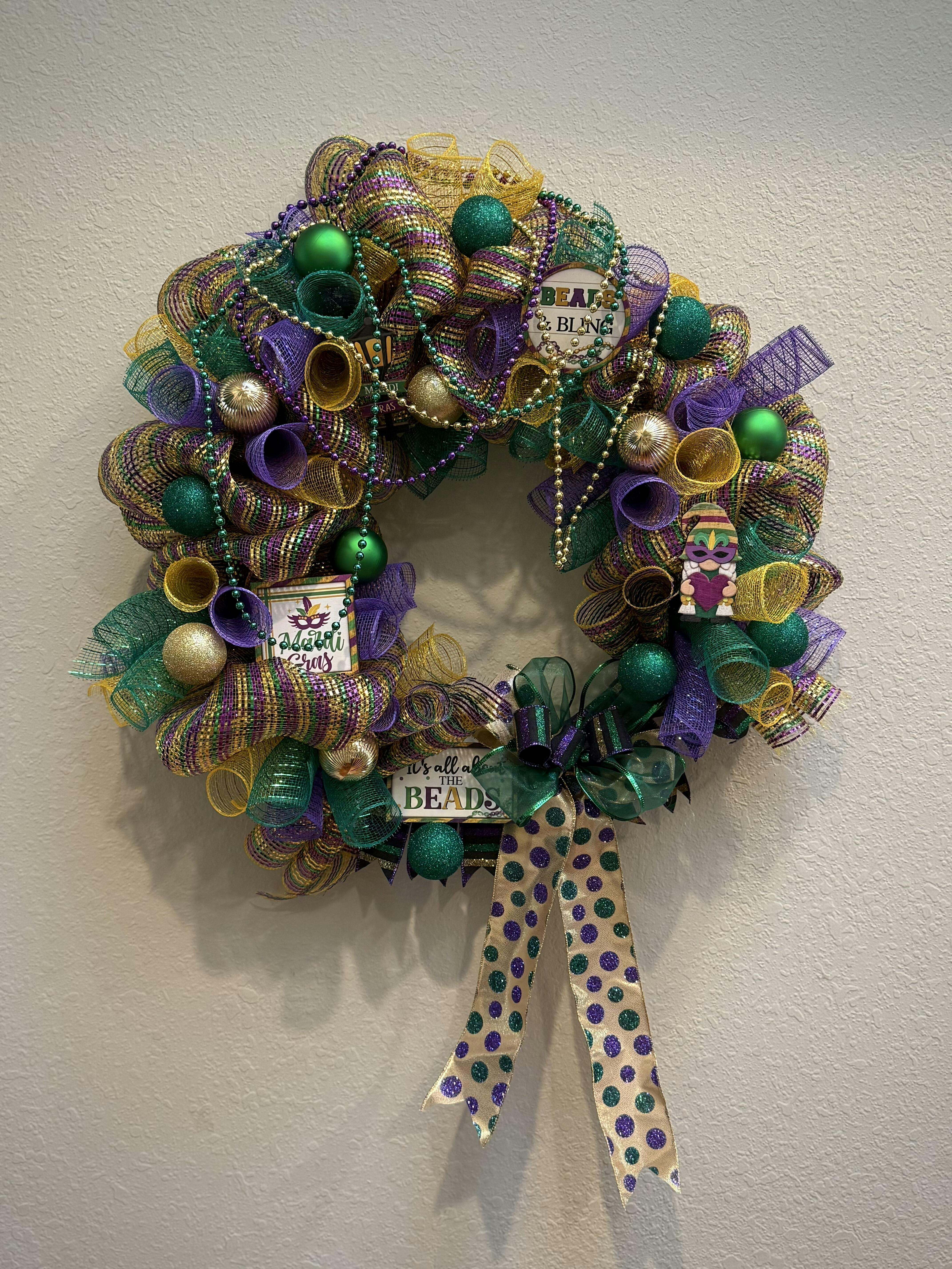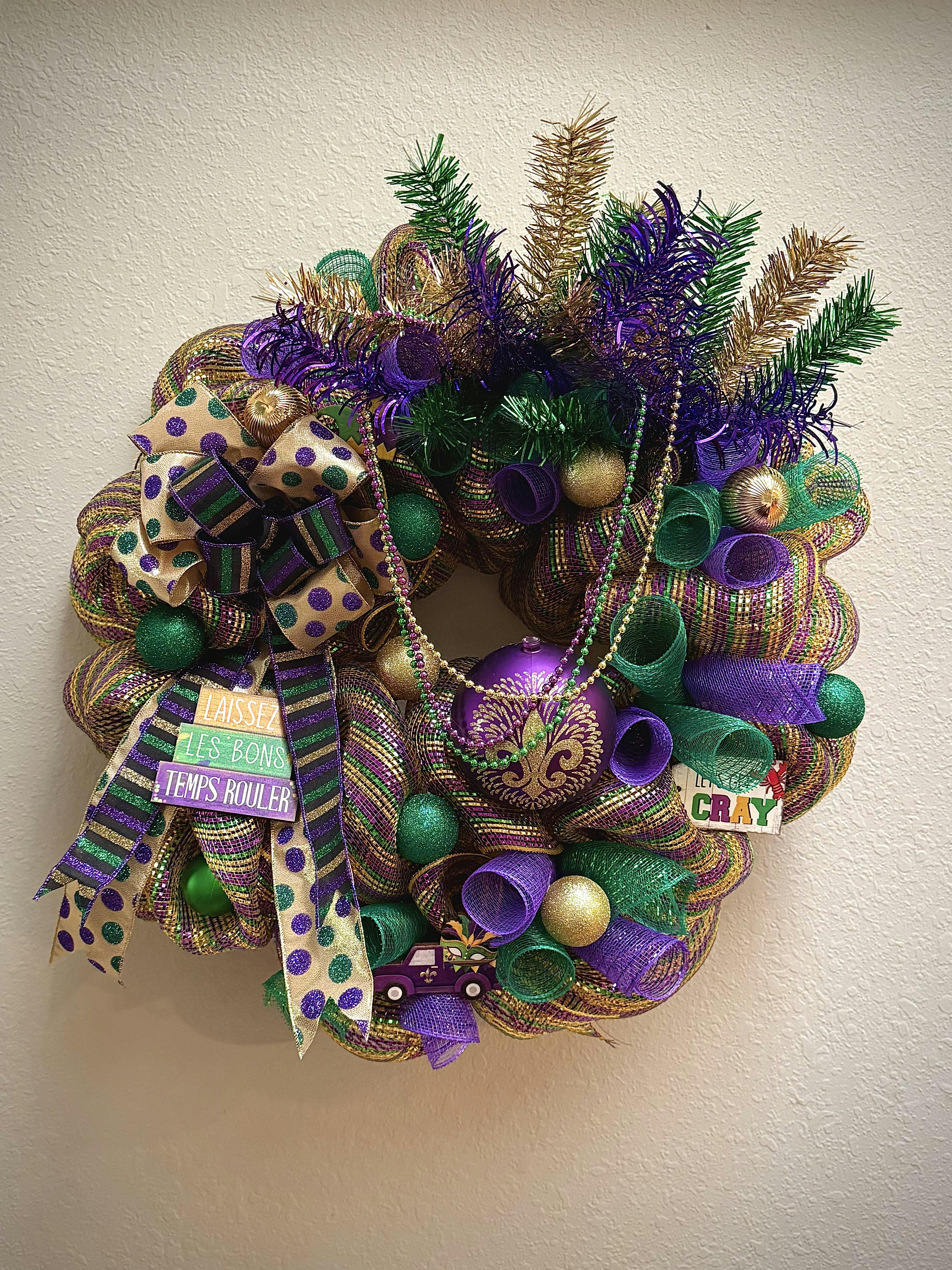 Mardi Gras Glitter Dots Wired Ribbon : Purple Gold Green - 2.5 Inches x 10 Yards (30 Feet)