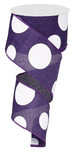 Polka Dot Satin Wired Ribbon : Purple White - 1.5 Inches x 10 Yards (30 Feet)