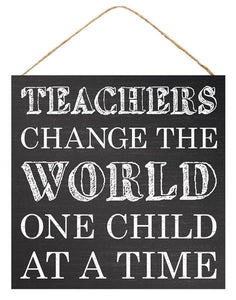 Teachers Change the World School Wooden Sign : - 10 Inches x 10 Inches