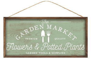 Garden Market Wooden Sign: Sage Green White - 12.5 Inches x 6 Inches