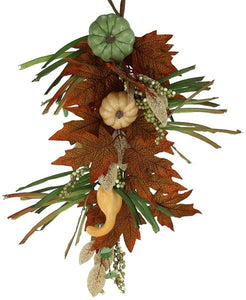 Tear drop Pumpkin leaf : sage cream moss orange - 24 inches length