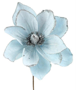 Light Blue Silver Velvet Christmas Floral Pick : - 9 Inches Long x 7 Inches Wide