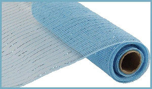 Deco Poly Mesh Ribbon : Metallic Turquoise Blue with Turquoise Foil - 10 Inches x 10 Yards (30 Feet)