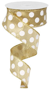 Polka Dot Wired Ribbon : Gold White - 1.5 Inches x 10 Yards (30 Feet)