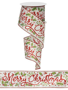 Merry Christmas Satin Wired Ribbon: Red Gren - 2.5 Inches x 10 Yards (30 Feet)