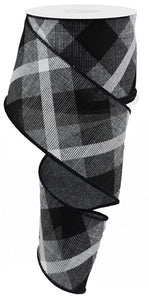 Plaid Canvas Wired Ribbon : Grey Gray Black White - 2.5 Inches x 10 Yards (30 Feet)