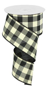 Plaid Check Wired Ribbon : Black Ivory - 2.5 Inches x 50 Yards (150 Feet)