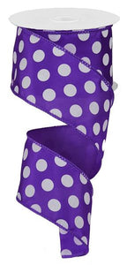 Polka Dot Satin Wired Ribbon : Purple White - 2.5 Inches Inches x 10 Yards (30 Feet)