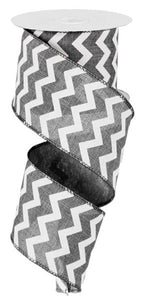 Chevron Canvas Wired Ribbon : Grey White - 2.5 Inches x 50 Yards (150 Feet)