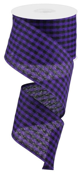 Gingham Check Wired Ribbon: Purple, Black - 2.5 Inches x 10 Yards (30 Feet)