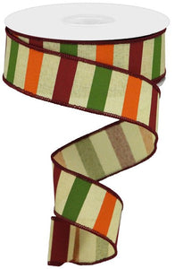 Horizontal Stripe On Royal, Tobacco/Dk Moss/Burg/Orng - 1.5 Inches x 10 Yards (30 Feet)