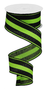Vertical Stripe Wired Ribbon : Lime Green, Black - 1.5 Inches x 10 Yards (30 Feet)