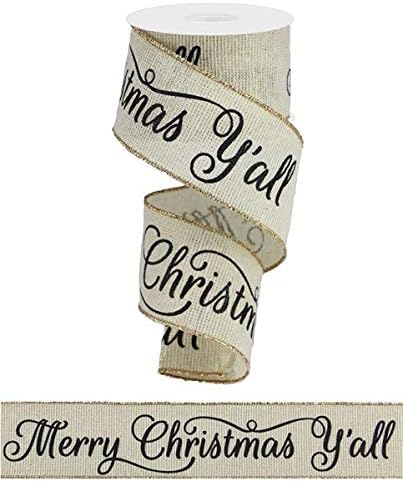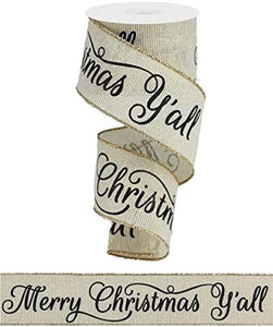 Merry Christmas Y'all Wired Edge Ribbon 2.5
