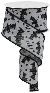 Halloween Bats on Canvas Wired Ribbon : Light Grey Gray - 2.5 Inches x 10 Yards (30 Feet)