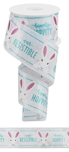 Peeking Bunny Wired Ribbon : Robins Egg Blue, Pink, White - 2.5 Inches x 10 Yards (30 Feet)
