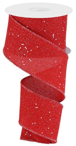 Snow Glitter Christmas Royal Canvas Burlap Wired Ribbon : Red White - 2.5 Inches x 10 Yards (30 Feet)