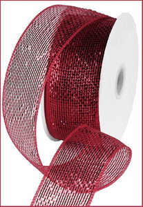 Deco Poly Mesh Ribbon : Metallic Burgundy Red - 2.5 Inches x 25 Yards (75 Feet)
