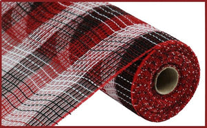 Faux Jute & Deco Mesh Ribbon Small Check : Red, White, Black - 10.25 Inches x 10 Yards (30 Feet)
